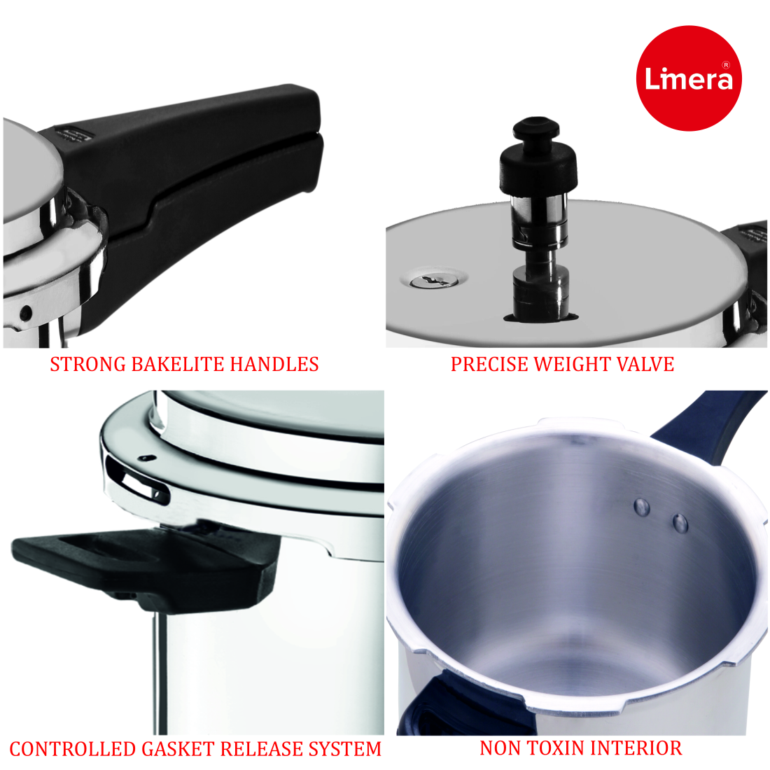 Checkout the awesome collection of Premium Quality culinary products from the House of Limera. Limera Ixora is a Premium Quality Pressure Cooker made from Virgin Aluminium material. Virgin Aluminium makes this Pressure Cooker sturdy and strong and provides longer life to the product. This Pressure Cooker is Gas compatible. This Cooker enables you to cook delicious dishes in a smarter way with higher energy efficiency and safety.